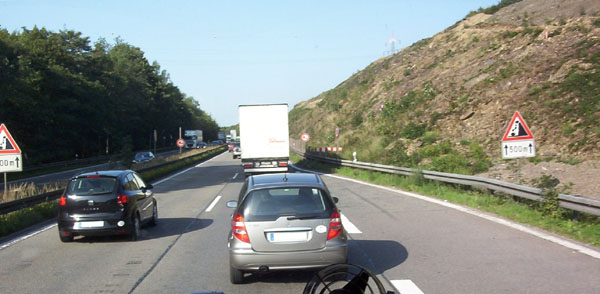 Kurz vor Burscheid wird der Verkehr allmählich zäher