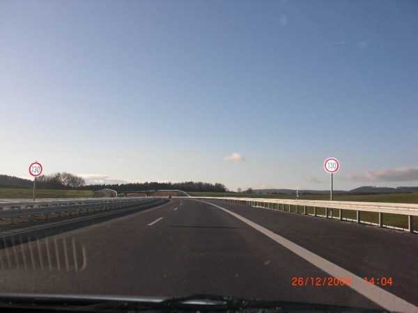 Geschwindigkeitsbegrenzungsschilder auf 130 Km/h wegen der neuen Fahrbahn