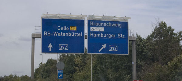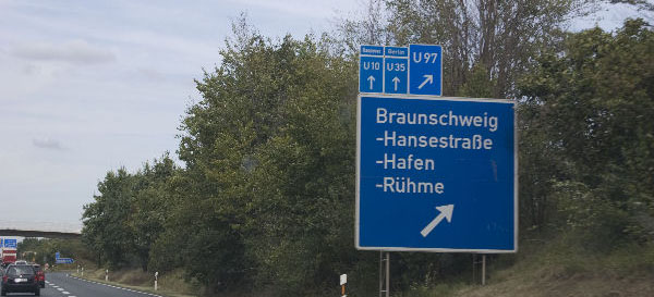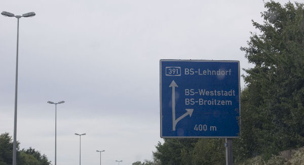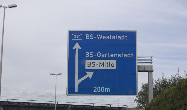 Entfernungstafel hinter BS-Weststadt