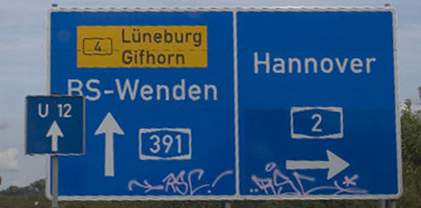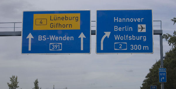 Unförmiger Bedarfsumleitungswegweiser weiter auf der A 2 nach Hannover zurück zur Übersicht |