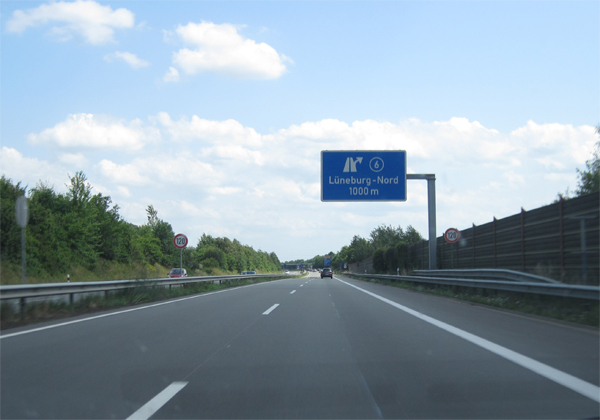 Fahrtrichtung Ost © Jens aus Buchholz, 30.06.2012 zurück zu Teil 1 Ausfahrt Handorf Auffahrt Handorf Hinweis auf den "Bardowicker Dom" Entfernungstafel Lärmschutz für Bardowick - Tempo über 200 km/h nicht selten Ankündigung Lüneburg-Nord (Tempo jetzt 120 km/h) Vorwegweiser Lüneburg-Nord Ausfahrt Lüneburg-Nord Übergang von der A39 auf die B4 (Ostumgehung Lüneburg) - Ende der Autobahn Weiter auf der B4 - geplanter Ausbau zur A39 (Richtung Wolfsburg) Begrüßung durch einen Blitzkasten (100 km/h) hinter dem Hinweisschild auf die Lüneburger Altstadt. Brücke über die Ilmenau Hinweis Ausfahrt LG-Lüne/Adendorf Vor der Ausfahrt LG-Lüne/Adendorf - B209 Richtung Norden (Lauenburg) zurück zur Übersicht |