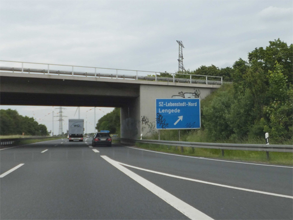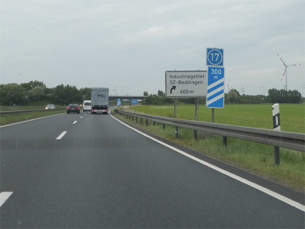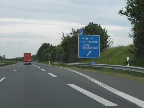 Fahrtrichtung Nord © Joachim Paul, 12.06.2013 zurück zu Teil 1 Vorwegweiser AS Lichtenberg AS Lichtenberg Ende Tempolimit 120 Touristische Unterrichtungstafel "Renaissanceschloss Salder" Entfernungstafel bei Kilometer 11,5 Ankündigungstafel AS Lebenstedt-Süd Vorwegweiser AS Lebenstedt-Süd AS Lebenstedt-Süd Entfernungstafel hinter Lebenstedt-Süd Ankündigungstafel AS Watenstedt Vorwegweiser AS Watenstedt AS Watenstedt Wieder Tempolimit 120 Entfernungstafel hinter Watenstedt Ankündigungstafel AS Lebenstedt-Nord Vorwegweiser AS Lebenstedt-Nord AS Lebenstedt-Nord Richtung VW-Werk Ankündigung Baustelle in 2 km AS Lebenstedt-Nord Richtung Lebenstedt weiter zu Teil 3 zurück zur Übersicht |