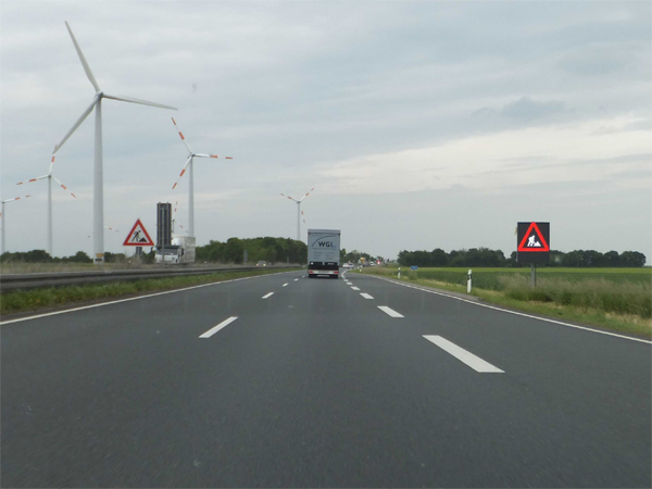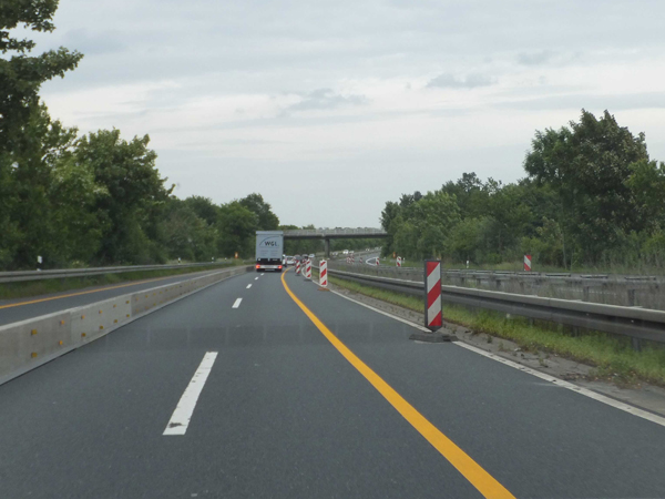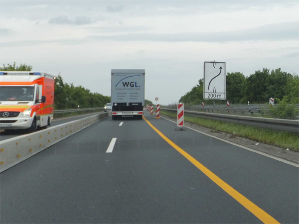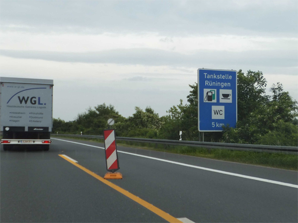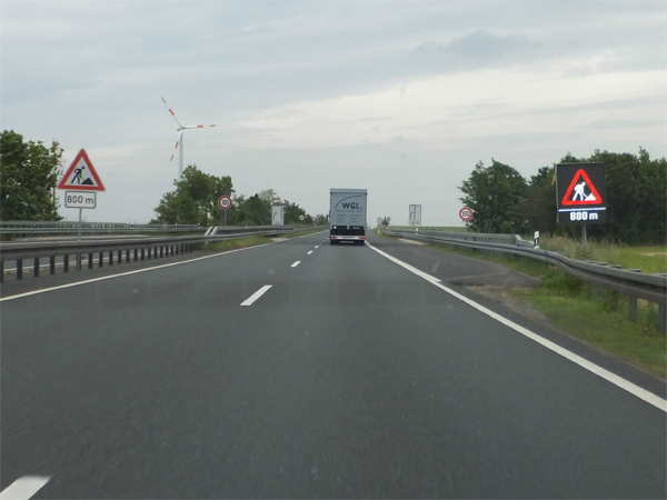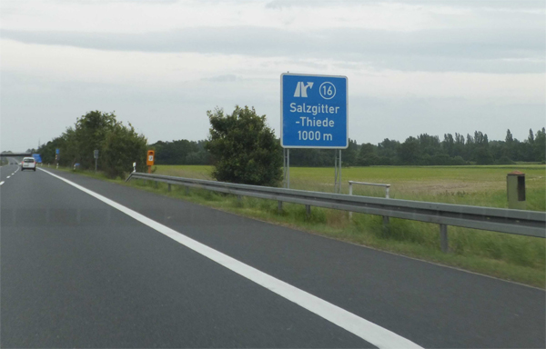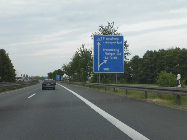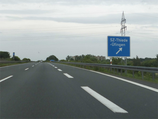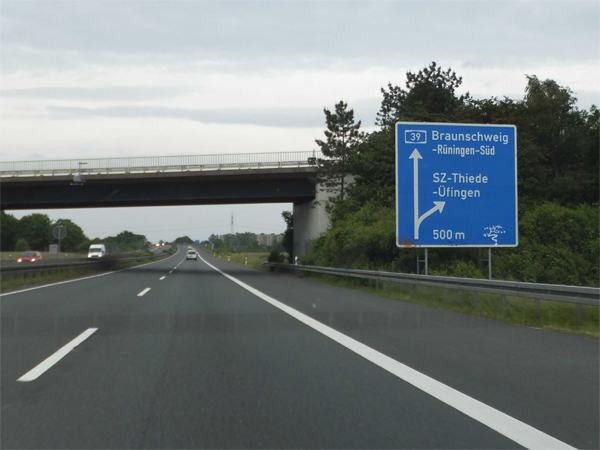 Fahrtrichtung Nord © Joachim Paul, 12.06.2013 zurück zu Teil 2 Ankündigung Baustelle Ankündigung Fahrstreifenende Tempolimit 80 Ende des linken Fahrstreifens Überleitung auf die Gegenfahrbahn Baustelle auf der Richtungsfahrbahn Braunschweig Mobile Mittelleitplanke Brücke der K 12 Überleitung zurück auf die Richtungsfahrbahn Braunschweig Tempolimit 40 Hinweis auf die Raststätte Rüningen, die einzige der gesamten A 39 Ankündigungstafel AS Thiede Vorwegweiser AS Thiede AS Thiede Entfernungstafel hinter Thiede Touristische Unterrichtungstafel "Zoo Braunschweig" Hinweis auf die Autobahnraststätte Rüningen Vorwegweiser Rüningen-Süd weiter zu Teil 4 zurück zur Übersicht |