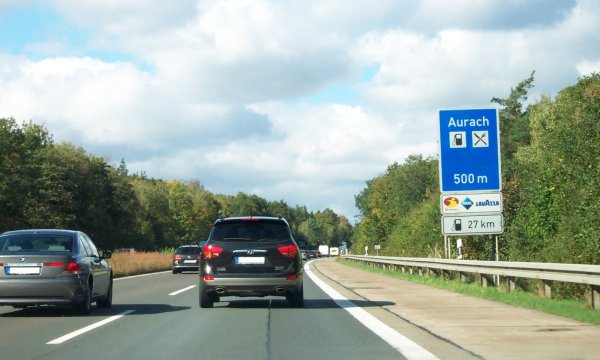 Gleich hinter der vorhin angekündigten Pannenbucht der Vorwegweiser der AS Erlangen-Frauenaurach (82)