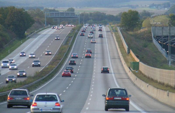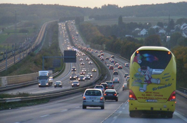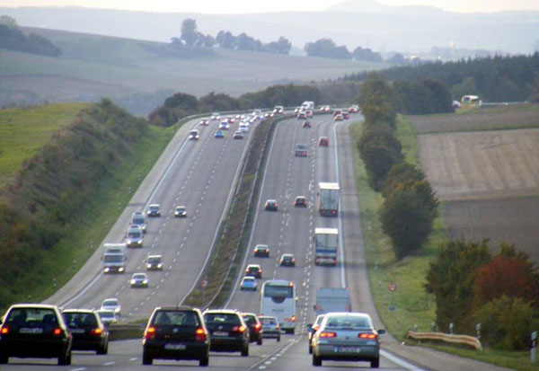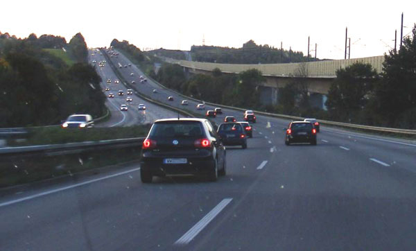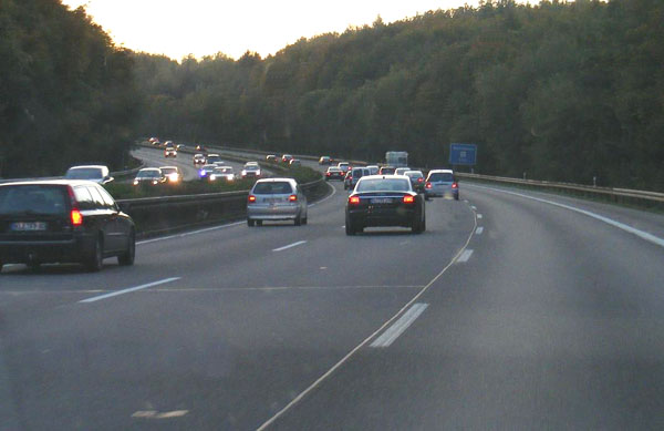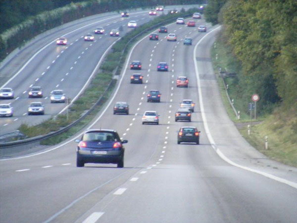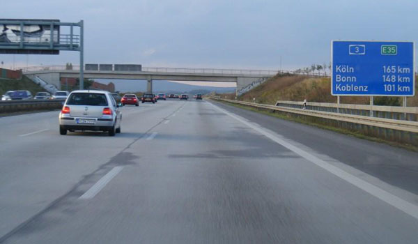 An der Schilderbrücke der Gegenfahrbahn links sind Graffitti zu erkennen