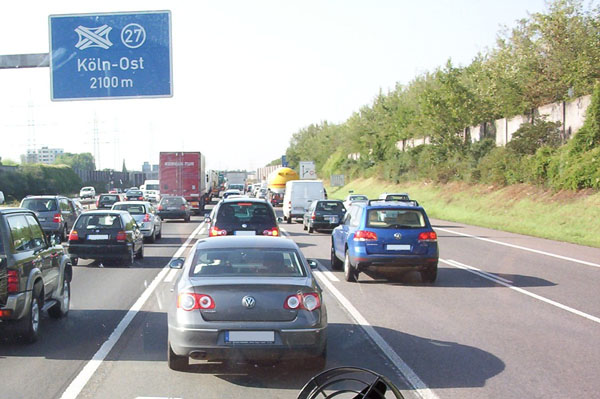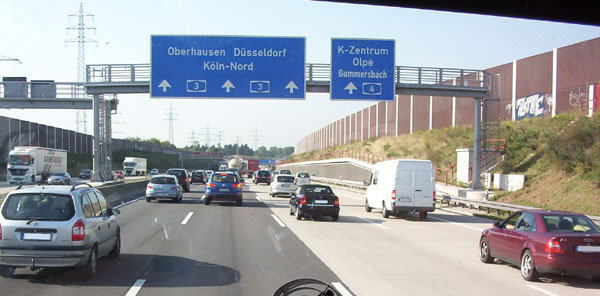 Vorwegweiser des Kreuz Köln-Ost. Auch die Gegenfahrbahn ist zur Zeit ziemlich dicht.