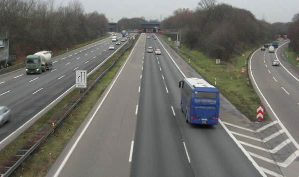 Blick von der B 55 auf den achtstreifigen Abschnitt der A 3.