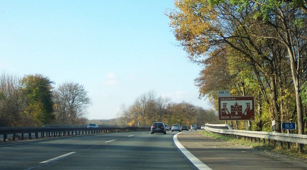 Touristenhinweis auf die "Zeche Zollern" - mit Zusatz "Ruhr 2010", weil das Ruhrgebiet vertreten von Essen in dem Jahr Europäische Kulturhauptstadt ist.