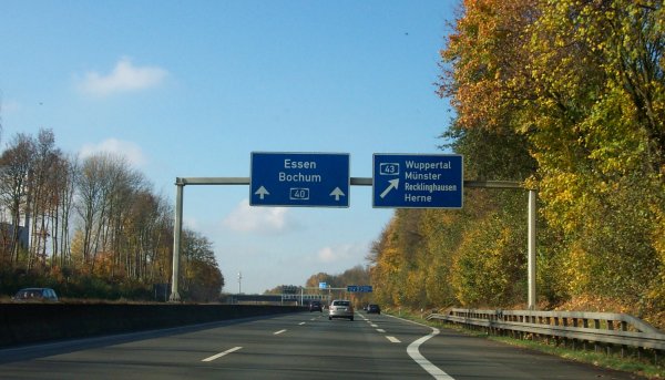 Vorwegweiser des Kreuzes Bochum noch in der Zufahrt der AS Bochum-Werne
