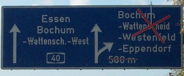 Ein gewohntes Bild im Ruhrgebiet: Die Ankündigung der AS Gelsenkirchen-Süd (28) gleich nach der AS Bochum-Wattenscheid-West (September 2006).