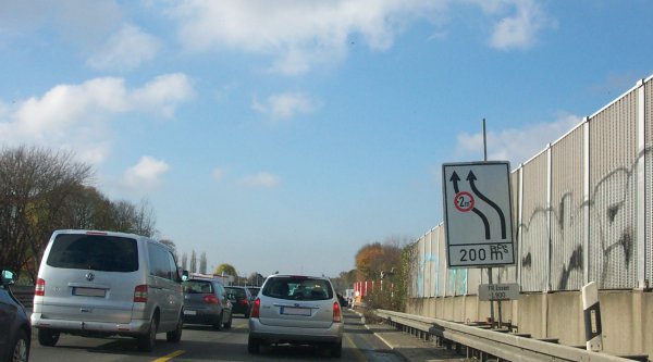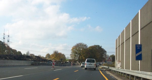 Knapp 100 m vor der AS Gelsenkirchen-Süd endet vorläufig der neu ausgebaute Streckenabschnitt...