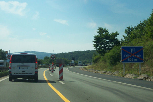 Weitere Ankündigung der Raststätte Dollenberg und Ankündigung einer weiteren Baustelle.