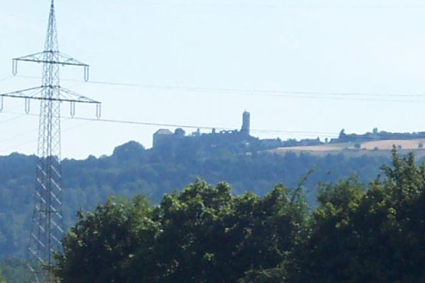 Blick vom Parkplatz aus auf die Burg Greifenstein