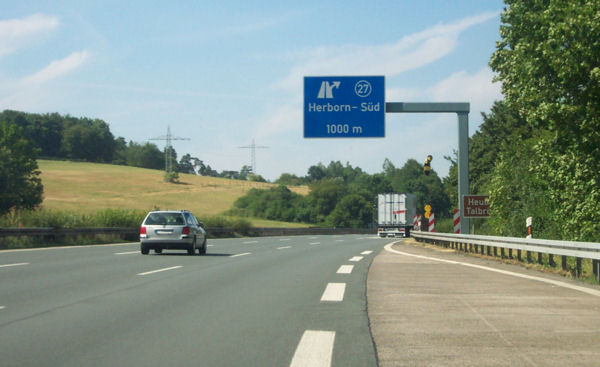 AS Herborn-West (26). Nach einem schweren Tanklastzug-Unfall am 7. Juli 1987 wurde vor der steil abfallenden Ortseinfahrt Herborn eine Notfallspur angelegt.