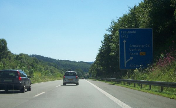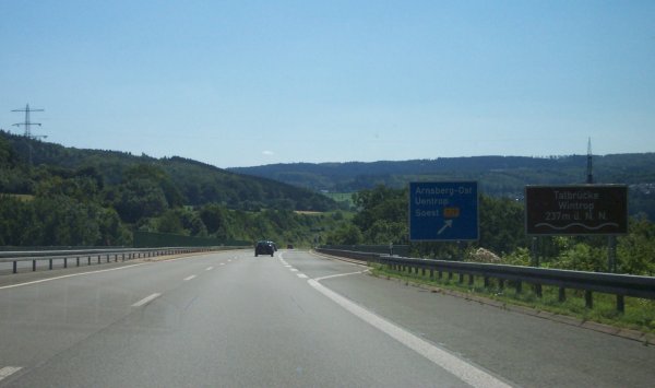 Einfahrt in die AS Arnsberg-Altstadt (65) noch auf der Talbrücke