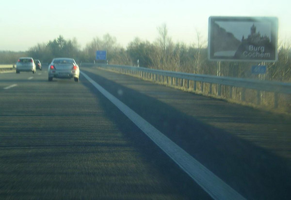 ... und die Burg Cochem. Dahinter die Ankündigungstafel des Parkplatzes Martental. weiter zu Teil 2 zurück zur Übersicht |