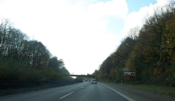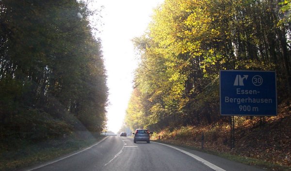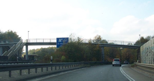 Die Westseite der AS Essen-Haarzopf. Genau hier ist am 24. November 2006 ein kleines Flugzeug „notgelandet“, der Treibstoff (weniger als ein Liter) reichte nicht mehr ganz bis zum nahen Flughafen Essen-Mülheim.