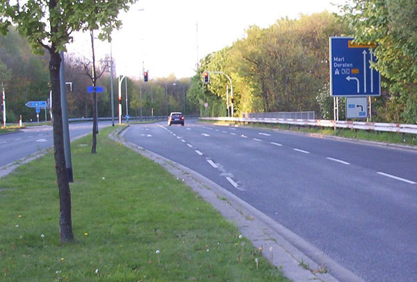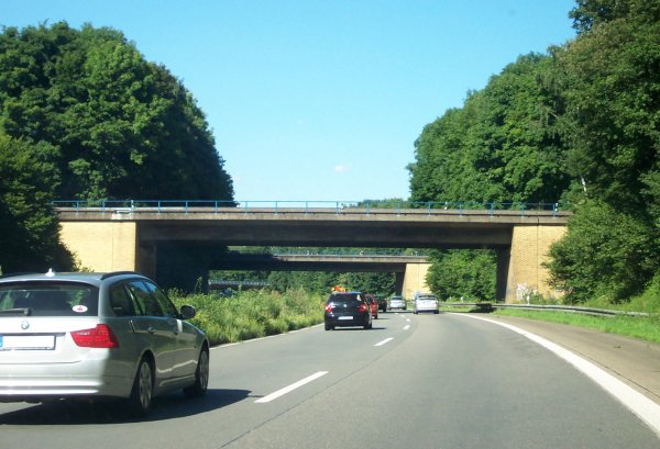 In der Fahrbahntrennung in Richtung Haltern. Diese Brücke über die Pawicker Str. sollte ursprünglich auch die A 41 überspannen, die längst verworfen ist.