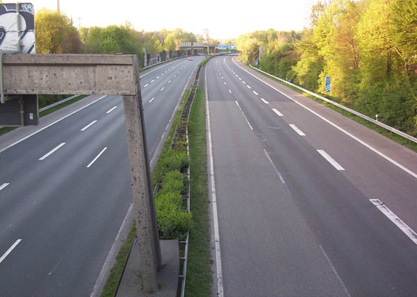 ...hinter der eine Fahrbahntrennung beginnt. Diese ist ein Überbleibsel der ursprünglich geplanten Gabelung mit der A 41. Nach Planungen aus den 1970-er Jahren sollte hier die A 52 enden.