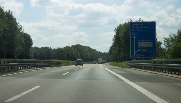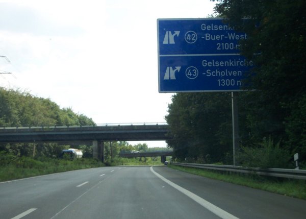 AS Gelsenkirchen-Scholven. Man beachte die rot durchgestrichene Autobahnnummer!