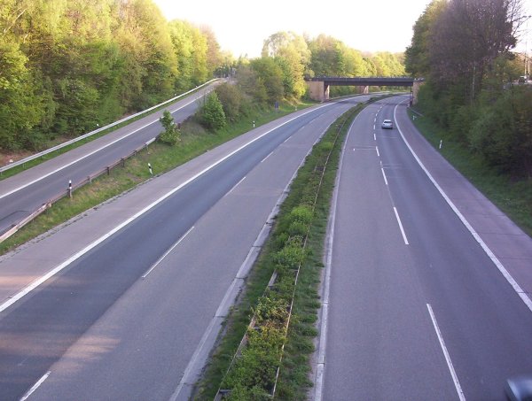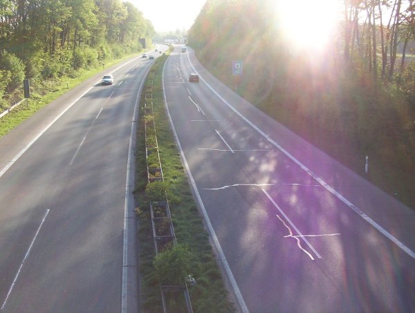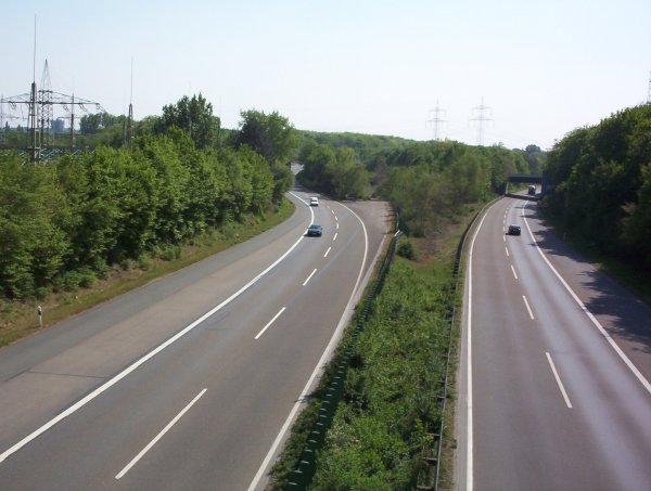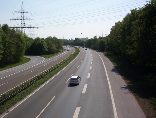 Blick von der kleinen Brücke der Pawiker Straße auf die Richtungsfahrbahn Gladbeck