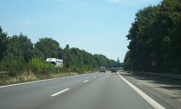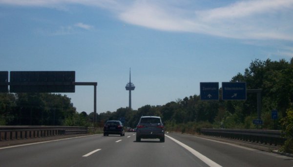 Hinter Kreuz Köln-Nord und AS Köln-Longerich. Gut zu sehen: der Kölner Dom