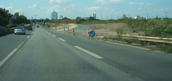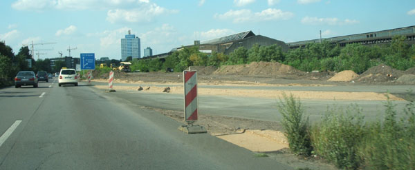 Hier wird für die Bauphase die Autobahn auf das Brachgelände umgeleitet