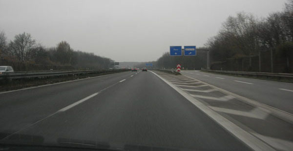 Der dritte (rechte) Fahrstreifen, der an der AS 35 Wahn hinzukam, wird weiter vorne an der AS Flughafen schon zur Abbiegespur