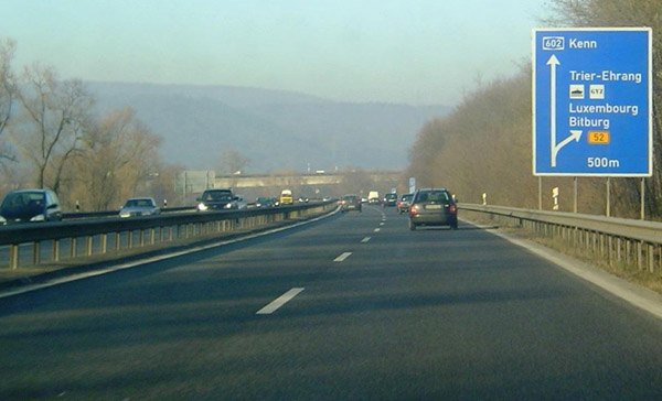 Hier mit Hinweis auf die A 64 nach Luxemburg