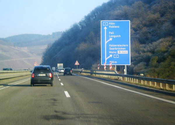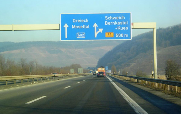 Das AD Moseltal wird nicht angekündigt, direkt nach der AS Moseltal steht dieser Vorwegweiser.