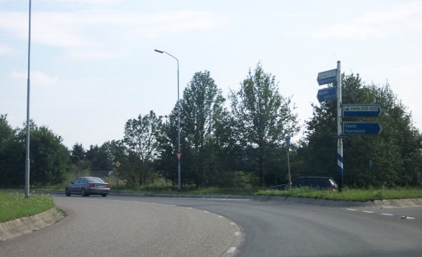 Abzweig auf die nach Deutschland führende Autobahn, die gleich auf die Grenze zuführte. Heute ist die Straße, die hier "Keulse Barriere" heißt, von der A 61 abgebunden und führt als Gemeindestraße zum Zollamt Schwanenhaus und dann weiter nach Deutschland, wo sie in den "Deller Weg", eine Erschließungsstraße, übergeht. weiter auf der deutschen A 61 nach Mönchengladbach zurück zur Übersicht |
