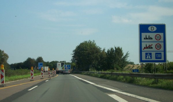 Hinweistafel auf Geschwindigkeitsbegrenzungen in Deutschland