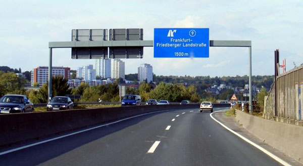 AS Friedberger Landstraße (9). Der Vorwegweiser Richtung Stadtmitte gehört ebenfalls zu dieser Anschlussstelle.