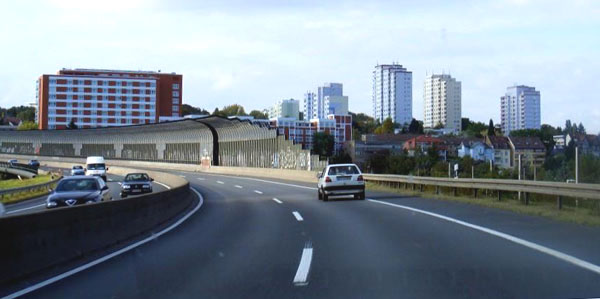Der halb offene Tunnel "Galerie Seckbacher Landstraße" besitzt einen kleinen Park auf dem Dach und ist für das künftige Dreieck Seckbach (A 66 Richtung Wiesbaden) vorbereitet