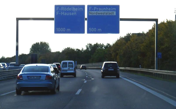 ...und Richtung F-Rödelheim sowie F-Hausen. Gleichzeitig kündigt sich das Norwestkreuz an...