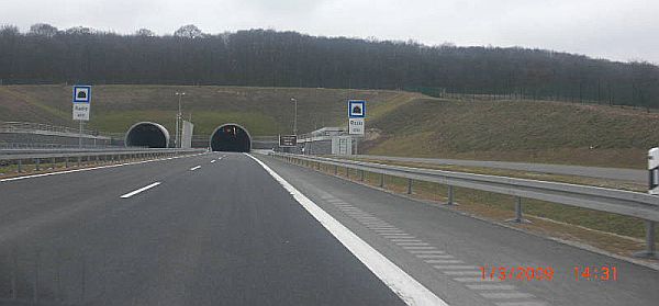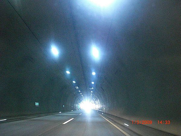 Im Tunnel. Die gesamte Beleuchtung besteht aus modernster LED-Technik. Damit ist dieser Tunnel Deutschlands erster und einzigster, der damit ausgerüstet wurde.