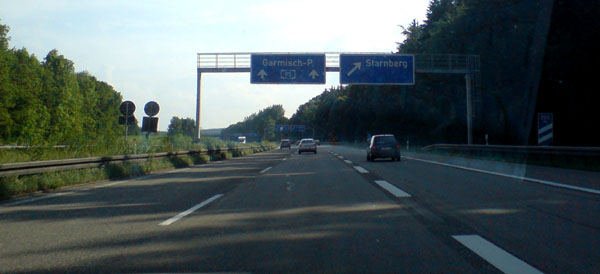 Die (nicht ausgewiesene) A 952 nach Starnberg zweigt ab und die Autobahn wird leerer