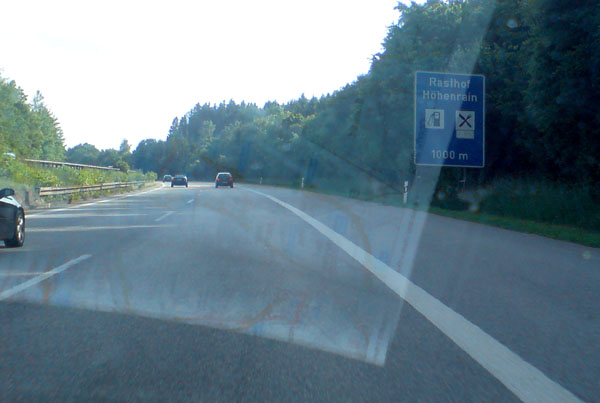 Ankündigung der Raststätte Höhenrain, der einzigen auf der A 95