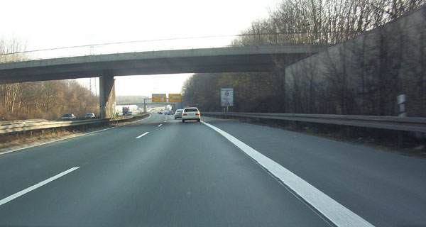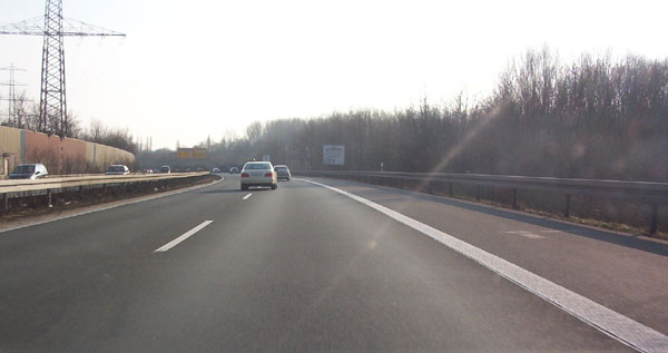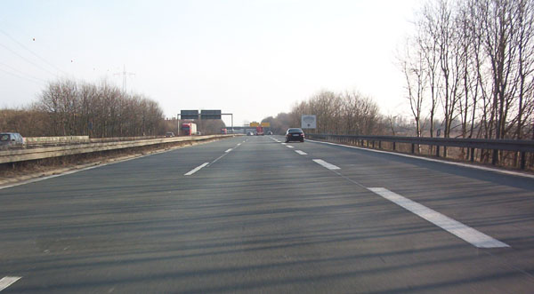 Im Bereich des Kreuzes. Rechts sieht man die Nebenfahrbahn, über die man zur A 2 Richtung Oberhausen bzw. Bielefeld gelangt.