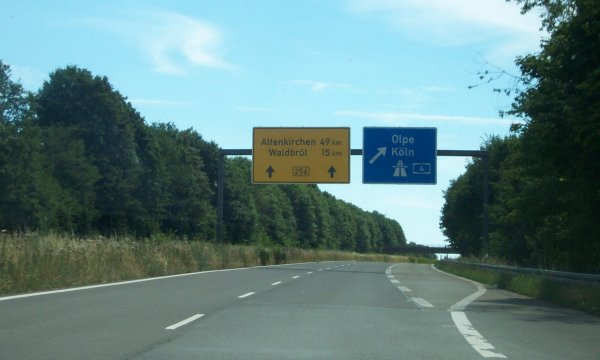 Immer noch im Bereich der AS Gummersbach-Derschlag. Hier stößt die B 256 auf diese Straße. Die Einfädelspur...