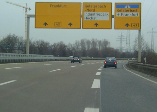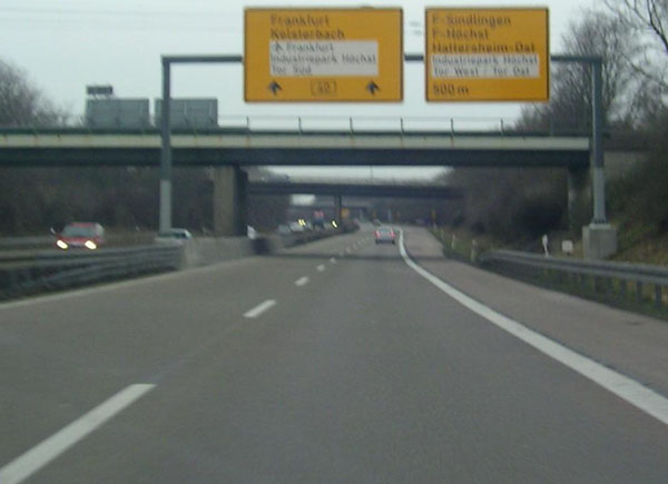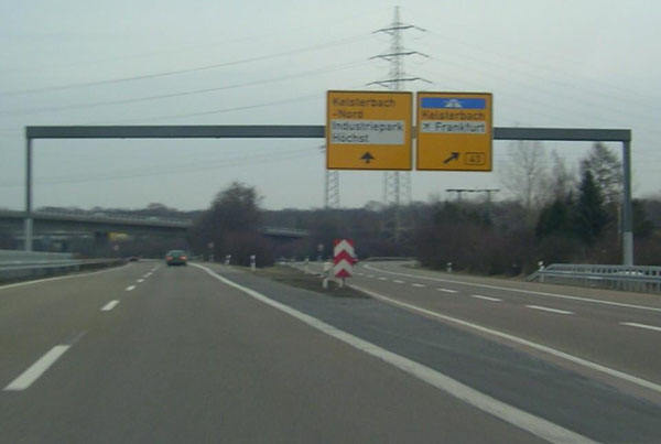Erst nach der Abfahrt F-Sindlingen erscheinen die Zeichen "Kraftfahrstraße" und "Autobahn Ende"