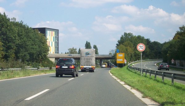 Kurz vor der besagten Kreuzung zweigt die B 51 als südliche Umgehung Münster in Richtung Telgte ab. Hier der entsprechende Vorwegweiser. weiter auf der Umgehungsstraße (Teil 2)