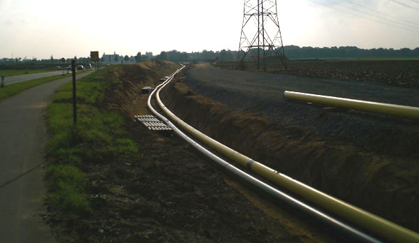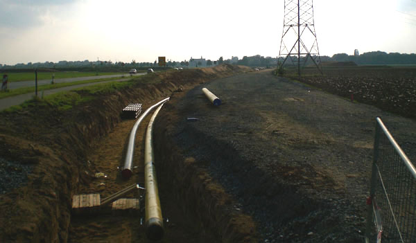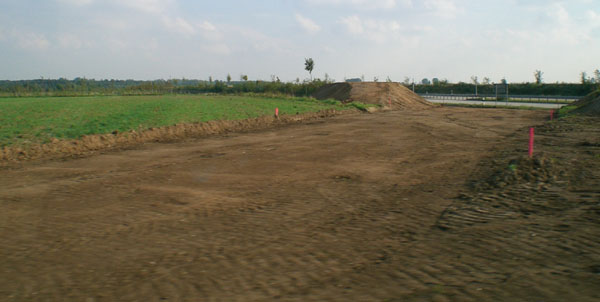 Blick Richtung Westen hinter den Wall: Hier werden Rohre und Leitungen umgelegt