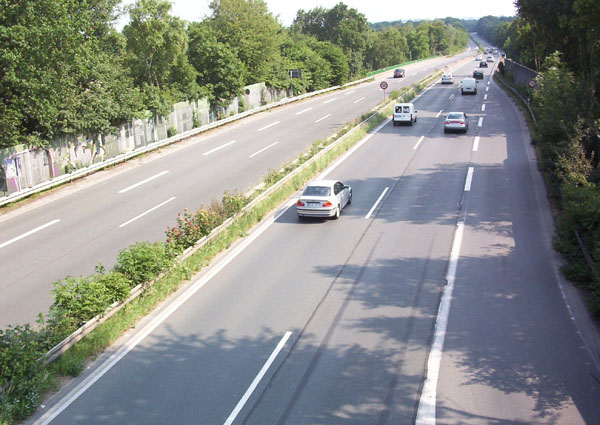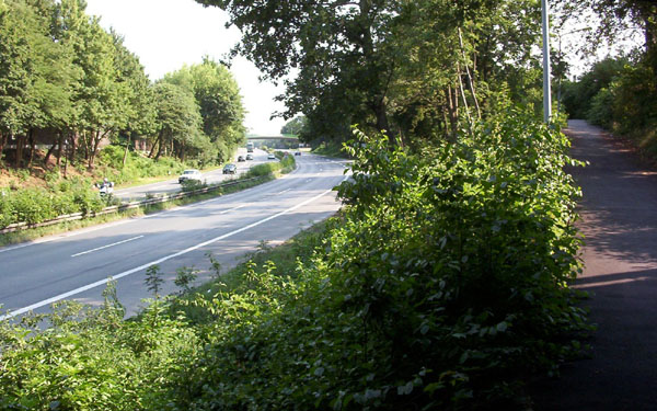 Unter der Brücke Harpener Landwehr, kurz vor der AS Bochum-Kornharpen