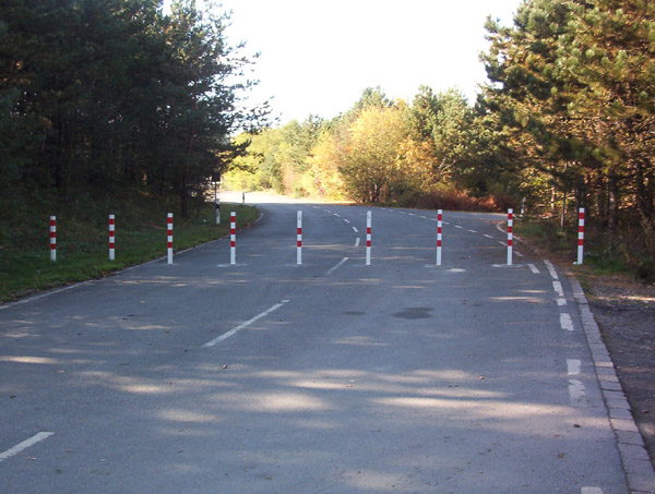 Absperrpfosten auf der Zufahrt zum Parkplatz