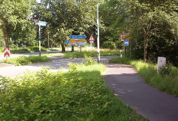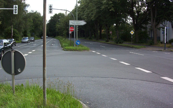 Am Abzweig der AS Königsallee/Nordhausen-/Oviedoring. Während es an der Südseite dieser AS nur Rampen gibt, findet man an der Nordseite ein halbes Kleeblatt.