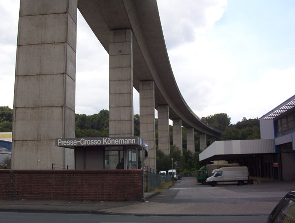AS Hagen-Süd Ostseite mit Brücke der A 45. Ab hier geht die Straße "Zur Hünenpforte" in den „Volmeabstieg" über.