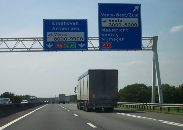 Autofahrer nach Amsterdam werden angewiesen, der A 67 weiter zu folgen... ...zumindest bis Eindhoven. Danach geht es über die A 2 weiter.