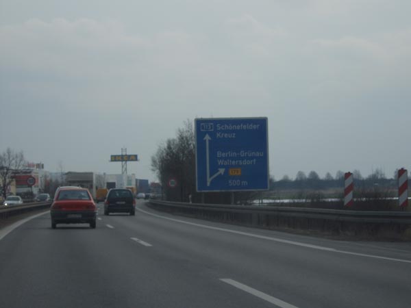 Ausfahrt Berlin-Grünau: Hier gelangt man auf die B 179, die parallel zur Autobahn verläuft
