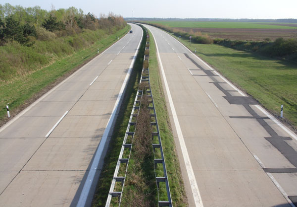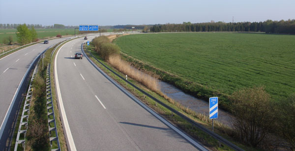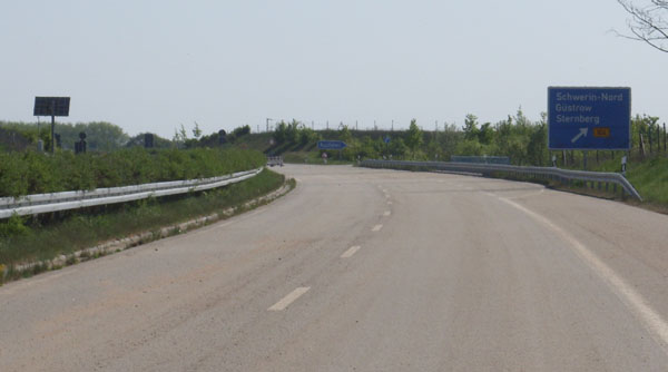 Fahrtrichtung Süd © Patrick Scholl, 13.04.2009 Vor der AS Schwerin-Nord. Dieser Abschnitt ist noch nicht unter Verkehr. (01.05.2009) AS Schwerin-Nord (01.05.2009) In Höhe Leezen auf dem im Jahr 2000 eröffneten Teilstück Schwerin-Nord - Ost Bei Görslow In Höhe Godern Bei Plate. Der Abschnitt südlich der AS Schwerin-Ost wurde zu DDR-Zeiten gebaut und ist hier praktisch noch im Urzustand. Bei Banzkow "DDR-live" bei Lübesse Nahaufnahme der Ausbesserung... ...und der Risse im Beton. Im weiteren Verlauf wird's noch übler... ...bis in Höhe Goldenstedt ein Ende 2008 sanierter Abschnitt beginnt. Seitenstreifen wurden jedoch nicht angebaut. Im Hintergrund die Wegweiser für das... ...Dreieck Schwerin. Die AS-Nummer wurde mit der Rückseite eines Verkehrszeichens verdeckt! Kurz vor dem Dreieck Hier endet die A 14 an der A 24. Ein Weiterbau nach Magdeburg ist geplant. zurück zur Übersicht |